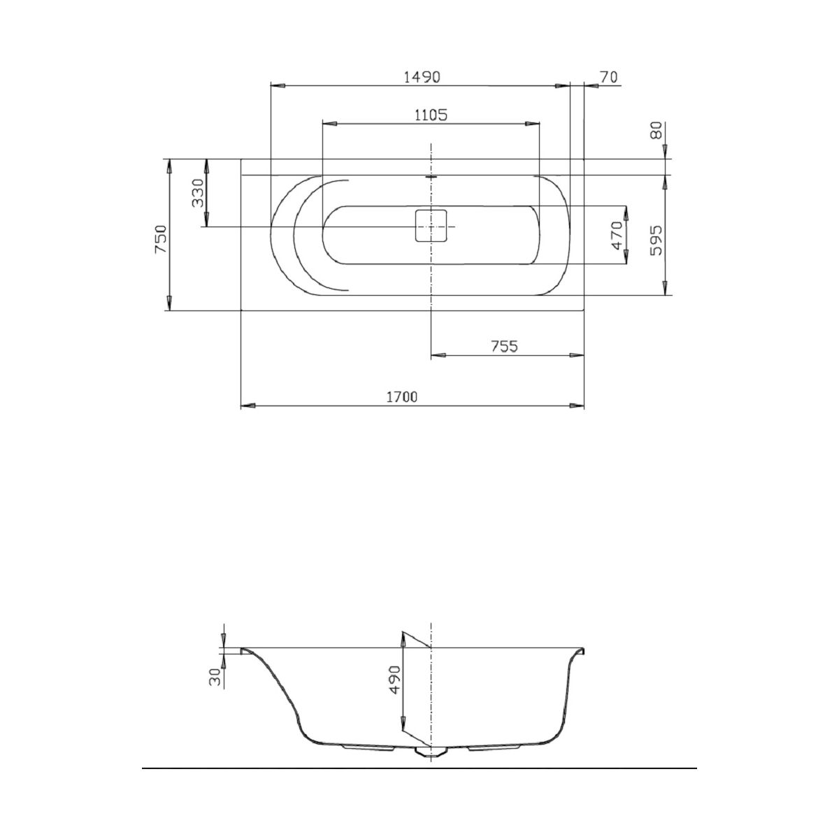 Hoesch Thasos Rechteckige Badewanne 170x75 cm weiß 3744.010
