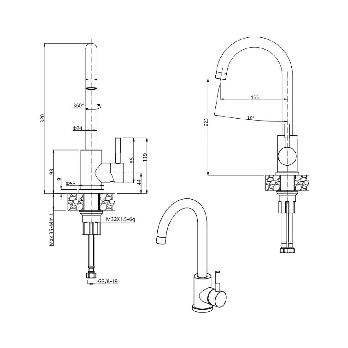 - Höhe ab Arbeitsplatte 320 mm