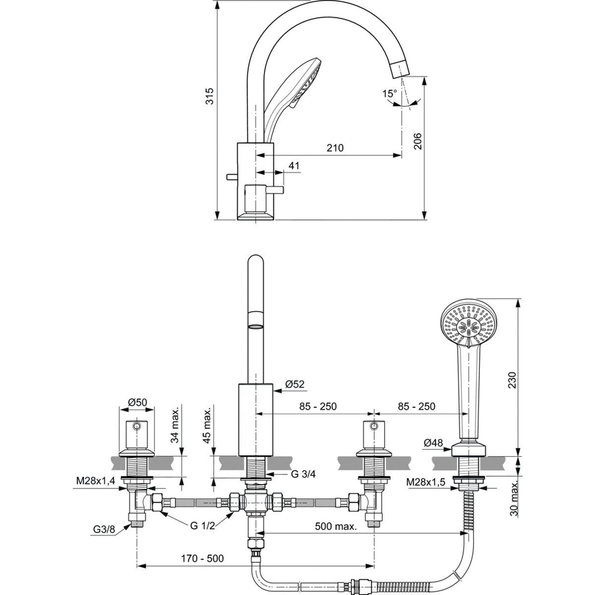 Ideal Standard Ceraline Badewannen- und Duscharmatur awannenmontiert chrom BC198AA