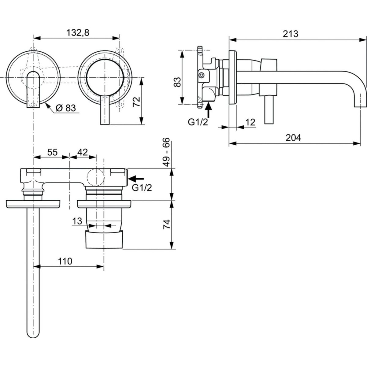 Ideal Standard Ceraline Waschtischarmatur Unterputz schwarz A6938XG
