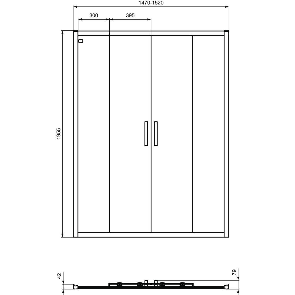 Ideal Standard Connect 2 Duschtüren 150 cm Schiebe- silber Matte/durchsichtiges Glas K9281EO