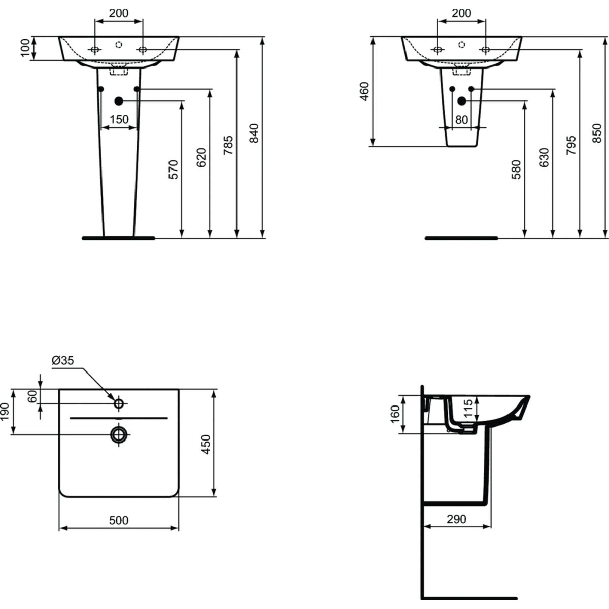 Ideal Standard Connect Air Waschbecken 50x45 cm rechteckig Klassisch-Möbel weiß E074601