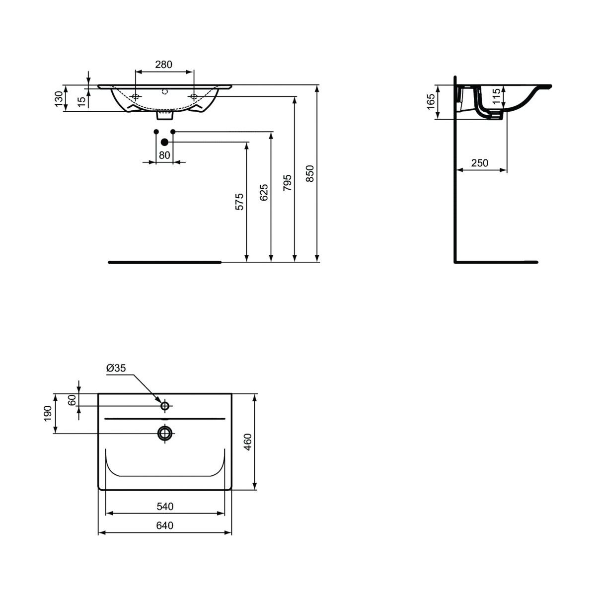 Ideal Standard Connect Air Waschbecken 64x46 cm rechteckig Klassisch-Möbel schwarz E0289V3
