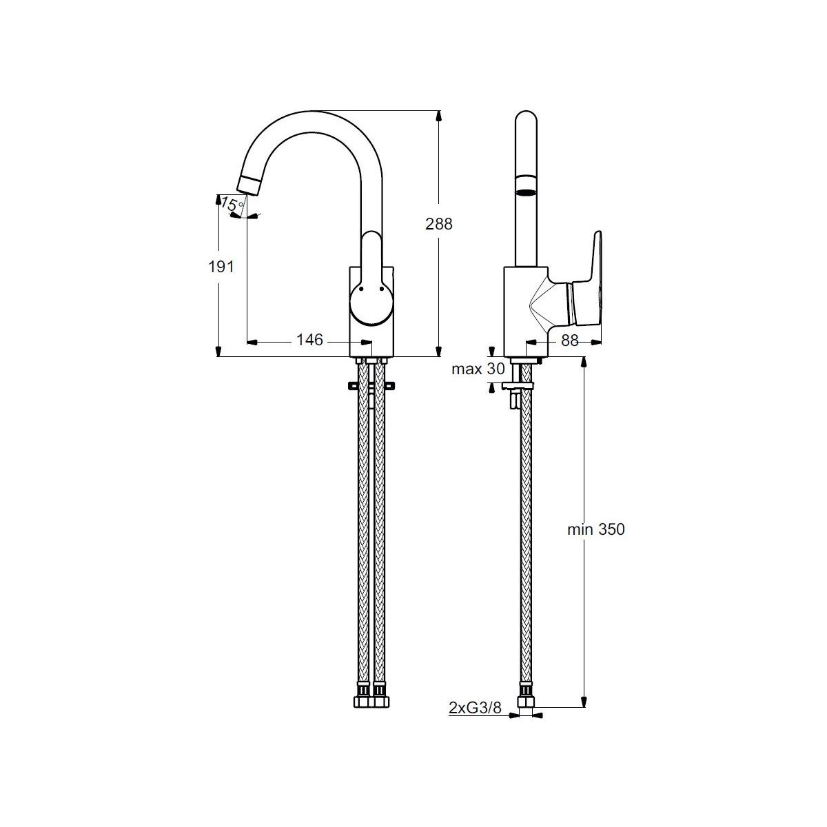 - Anschlussschläuche vom Typ SPX G3/8"