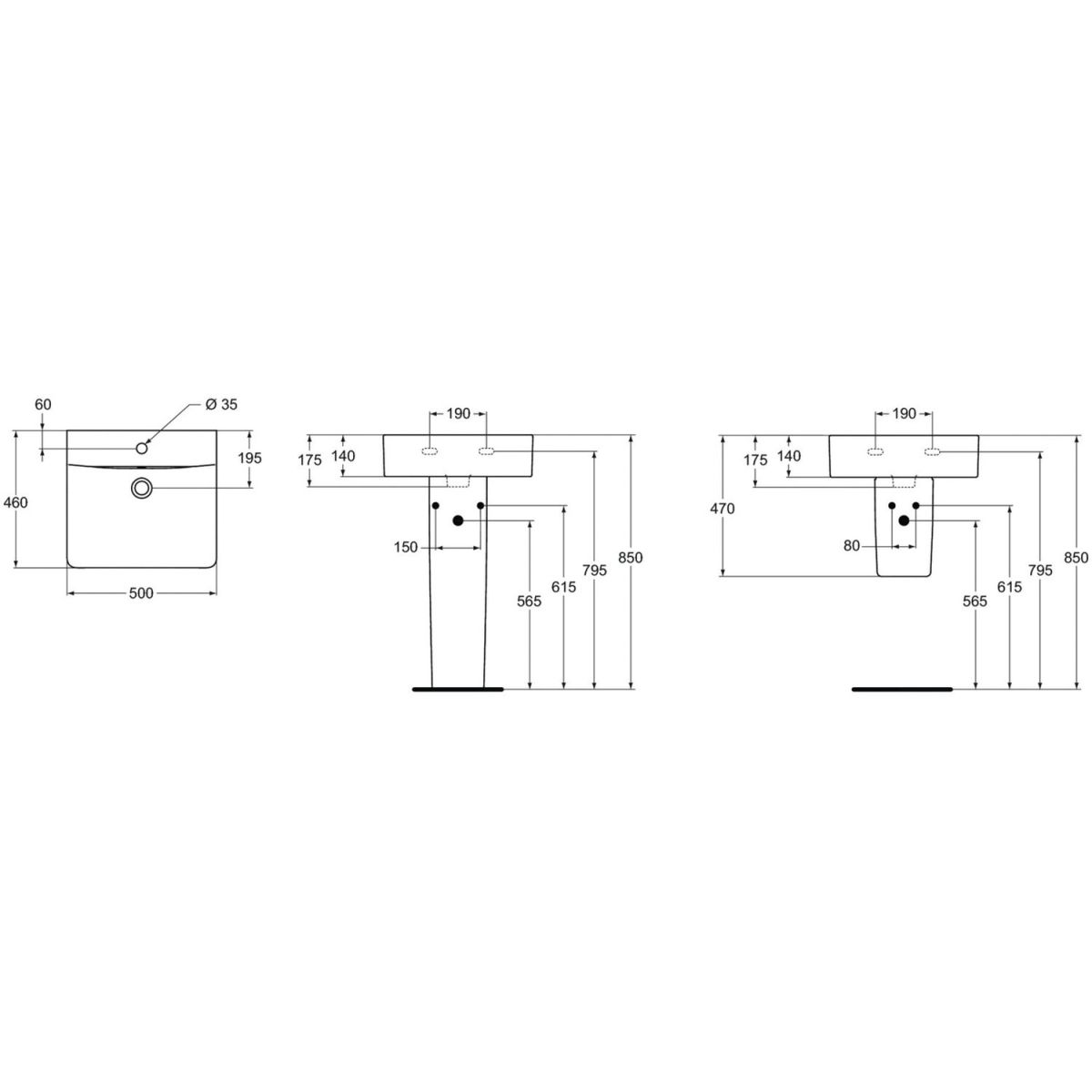 Ideal Standard Connect Waschbecken 50x46 cm rechteckig Klassisch-Möbel weiß E788401