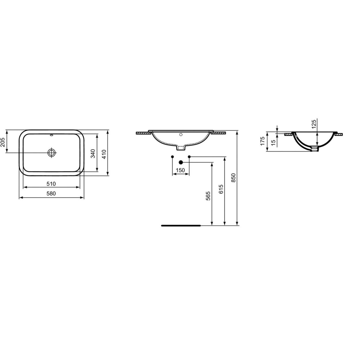 Ideal Standard Connect Waschbecken 58x41 cm rechteckig Einbauwaschbecken weiß E505901