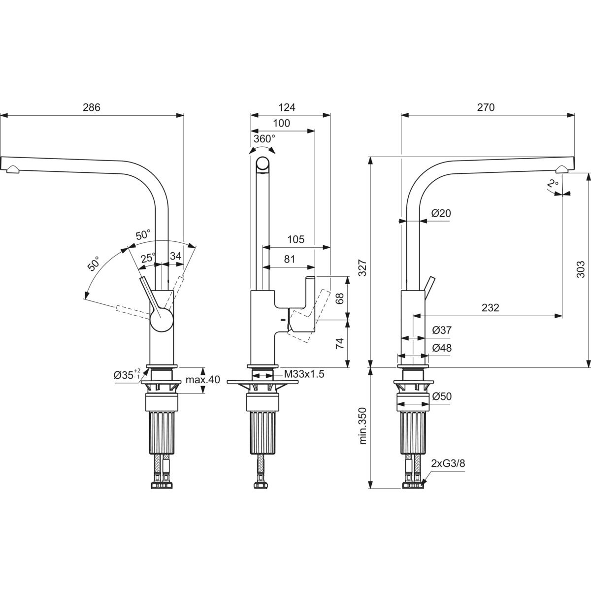 - einfache Montage + Befestigung von Küchenarmaturen