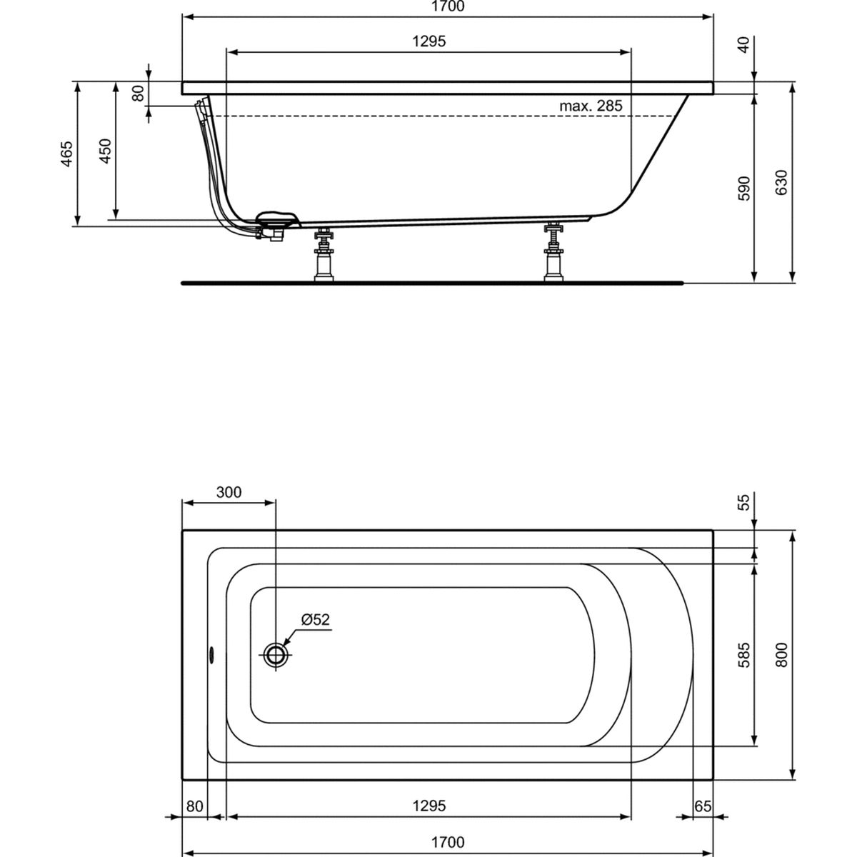 Ideal Standard Hotline New Rechteckige Badewanne 170x80 cm weiß K274701