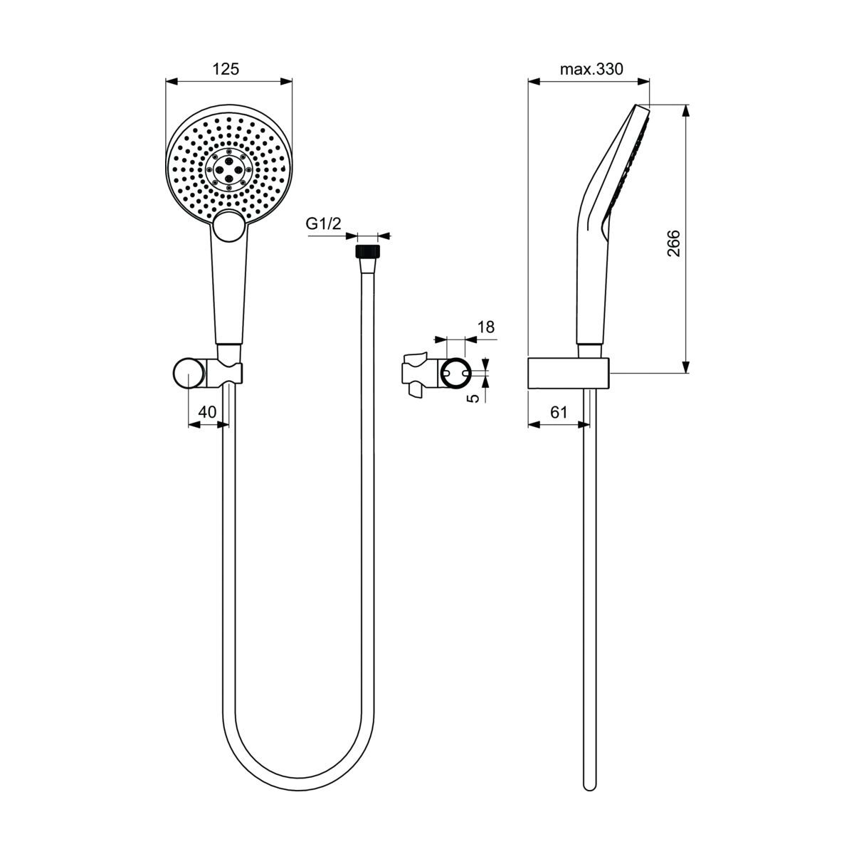 - Inbegriffen: Duschkopf, Duschschlauch, Duschhalter