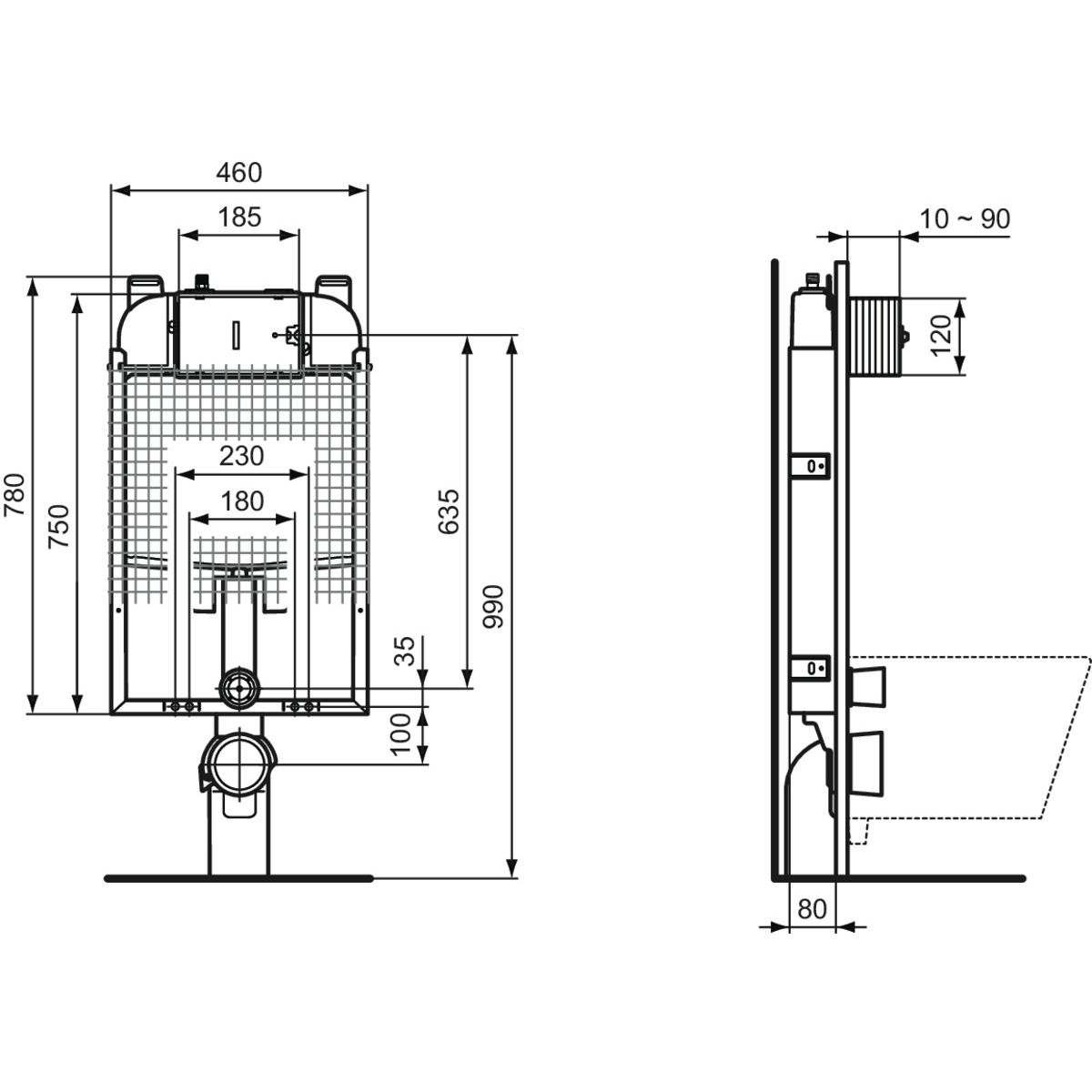 Ideal Standard Prosys unterputzrahmen in der hängenden Schüssel R014667