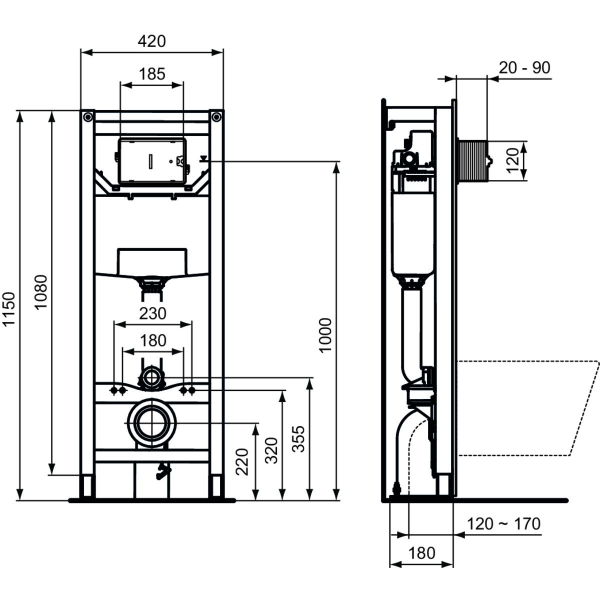 Ideal Standard Prosys unterputzrahmen in der hängenden Schüssel R015467