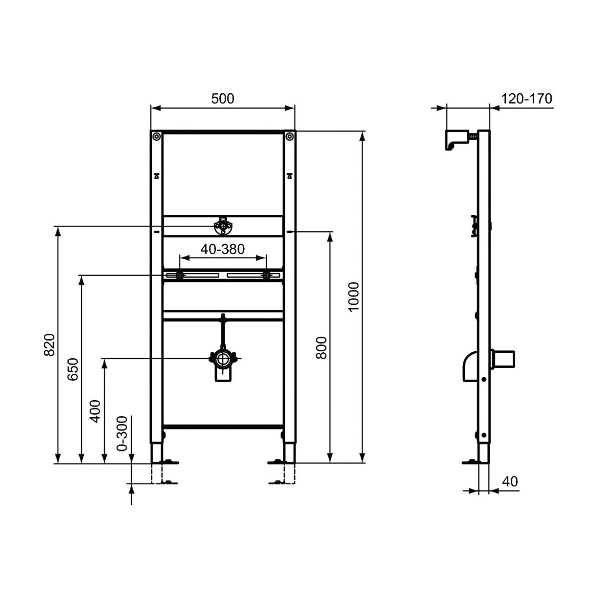 - Unterputzinstallation mit Tragrahmen, Befestigungshalterungen für Boden und Wand mit vier Befestigungspunkten