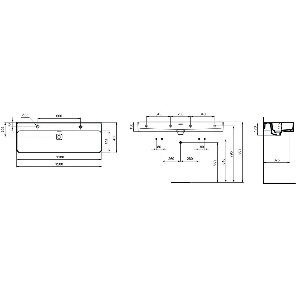 - Waschbecken hat 4 Befestigungspunkte (zwei Montagesätze erforderlich)