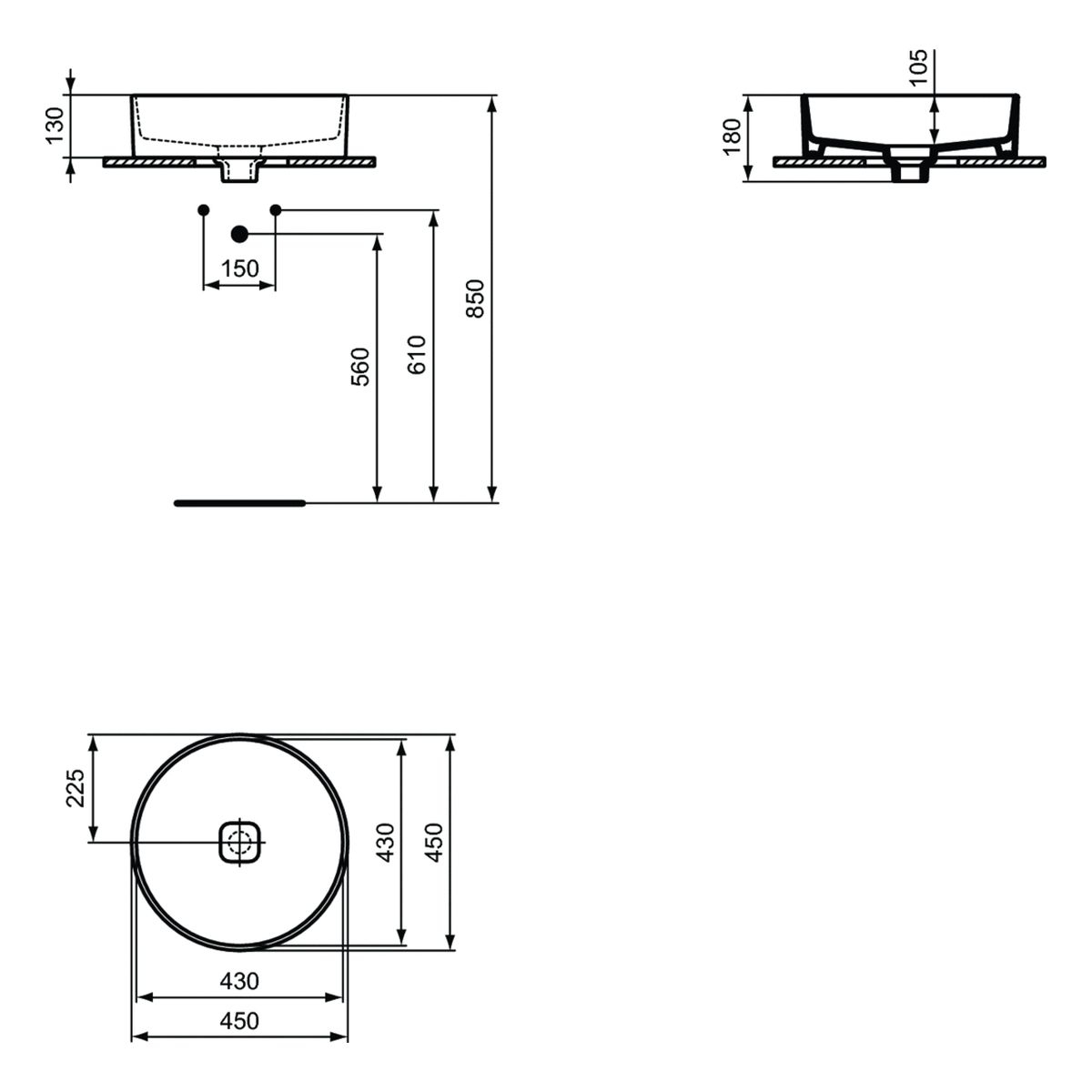 Ideal Standard Strada II Waschbecken 45x45 cm rund Aufsatzwaschbecken weiß T295901