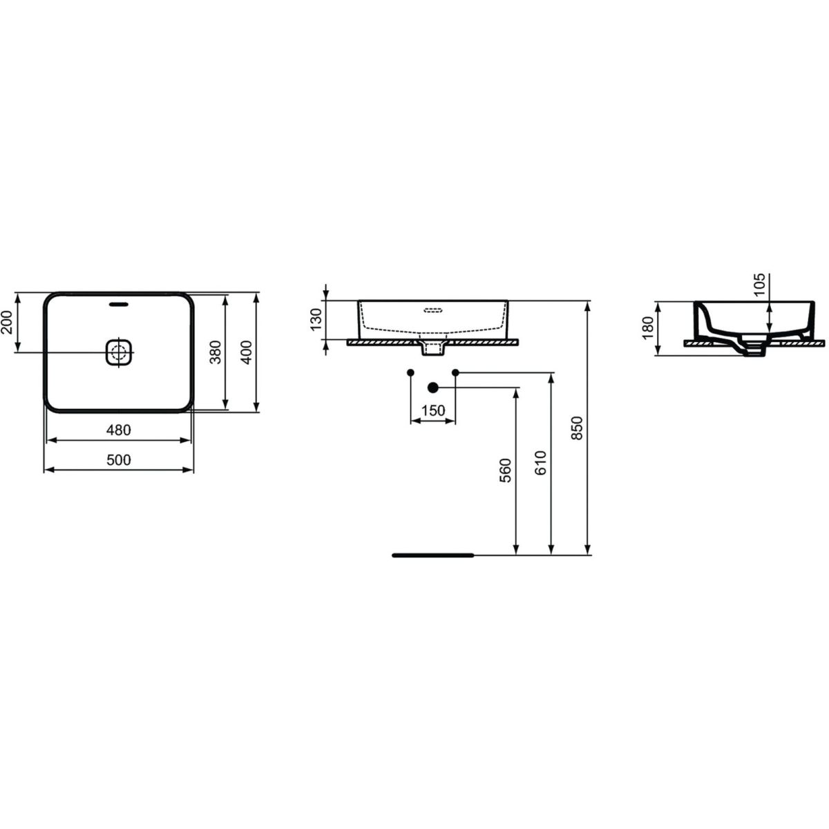 Ideal Standard Strada II Waschbecken 50x40 cm rechteckig Aufsatzwaschbecken weiß T296501