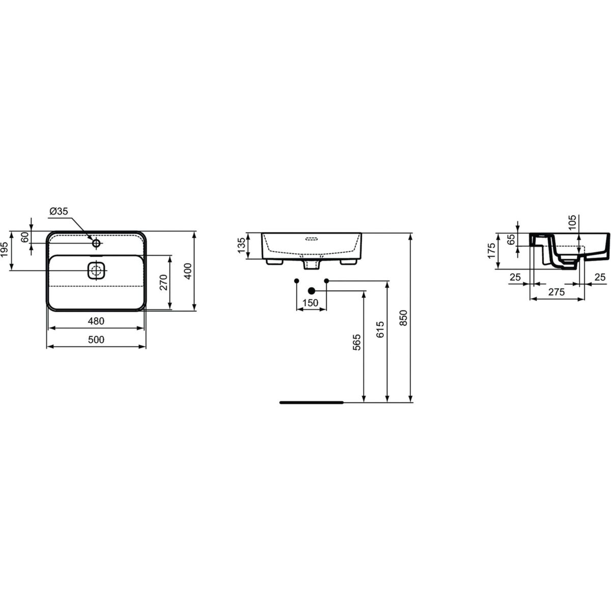 - inklusive weißer Keramik-Ablaufabdeckung (T854601), Schablone zum Ausschneiden der Öffnung in der Arbeitsplatte und Montageset