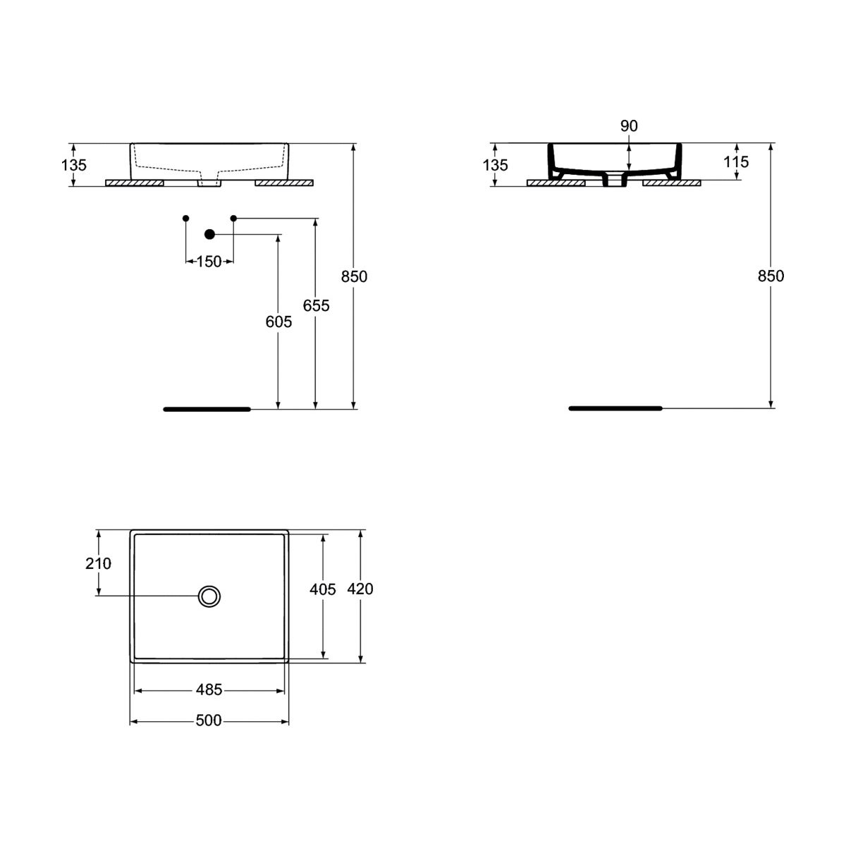 Ideal Standard Strada Waschbecken 50x42 cm rechteckig Aufsatzwaschbecken weiß K077601
