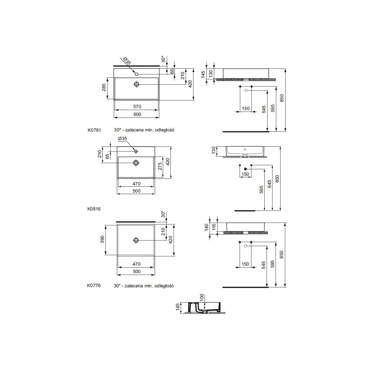 Ideal Standard Strada Waschbecken 50x42 cm rechteckig Aufsatzwaschbecken weiß K081601