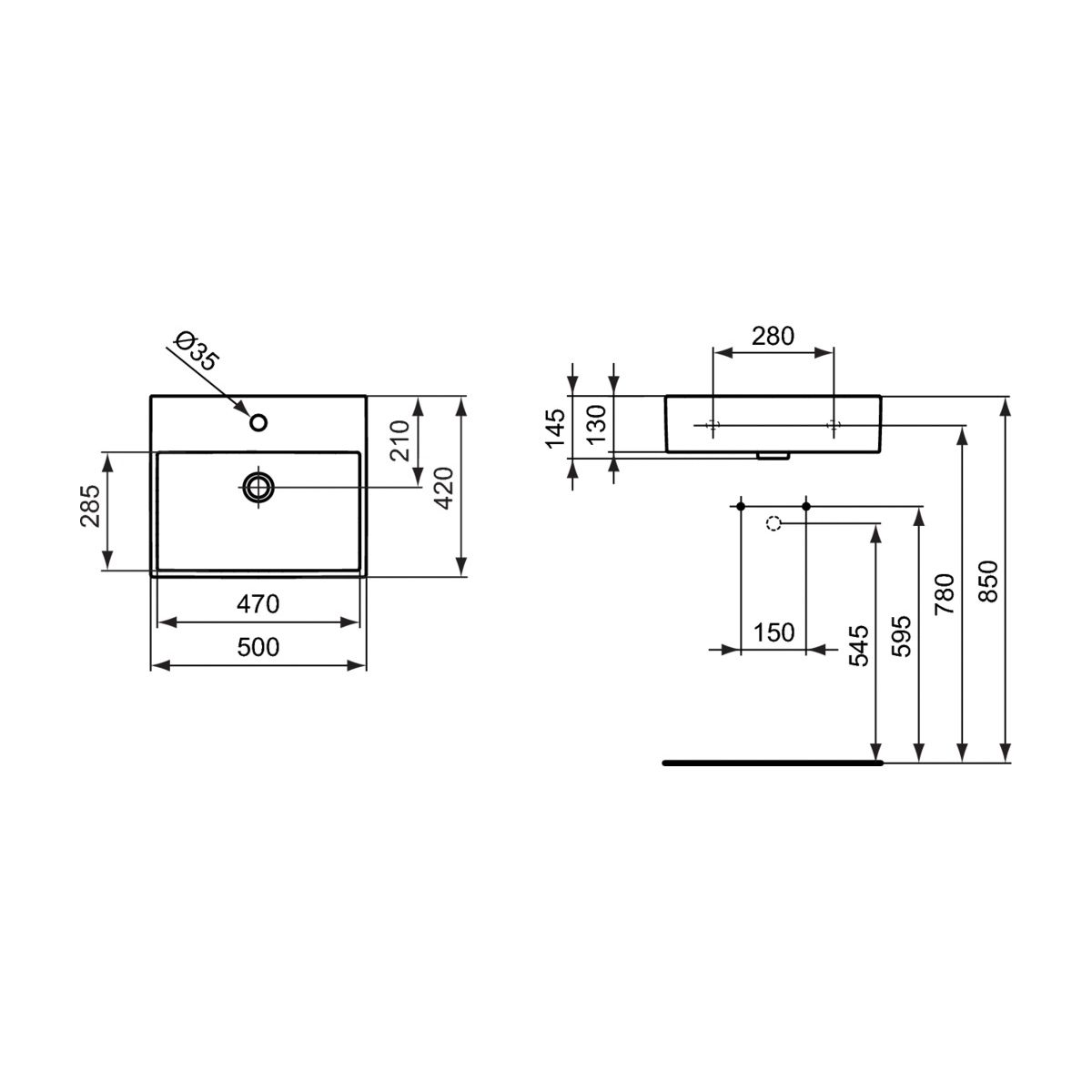 Ideal Standard Strada Waschbecken 50x42 cm rechteckig Klassisch-Aufsatzwaschbecken weiß K077701