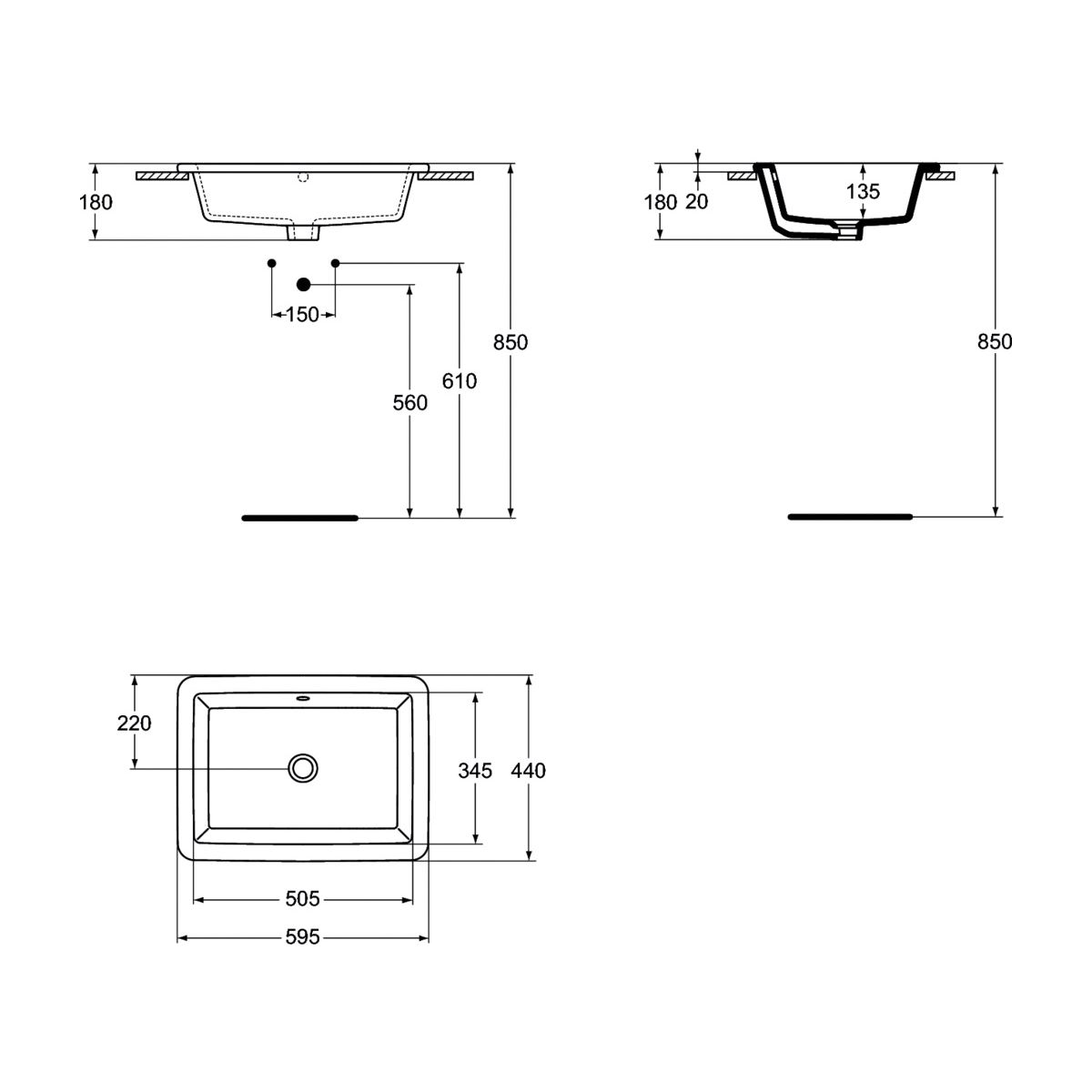 Ideal Standard Strada Waschbecken 60x44 cm rechteckig Einbauwaschbecken weiß K078001