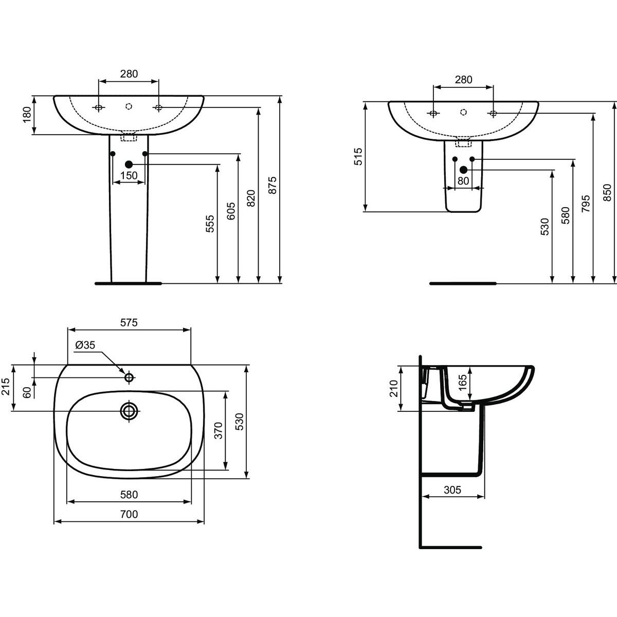 Ideal Standard Tesi Halber Sockel weiß T033401