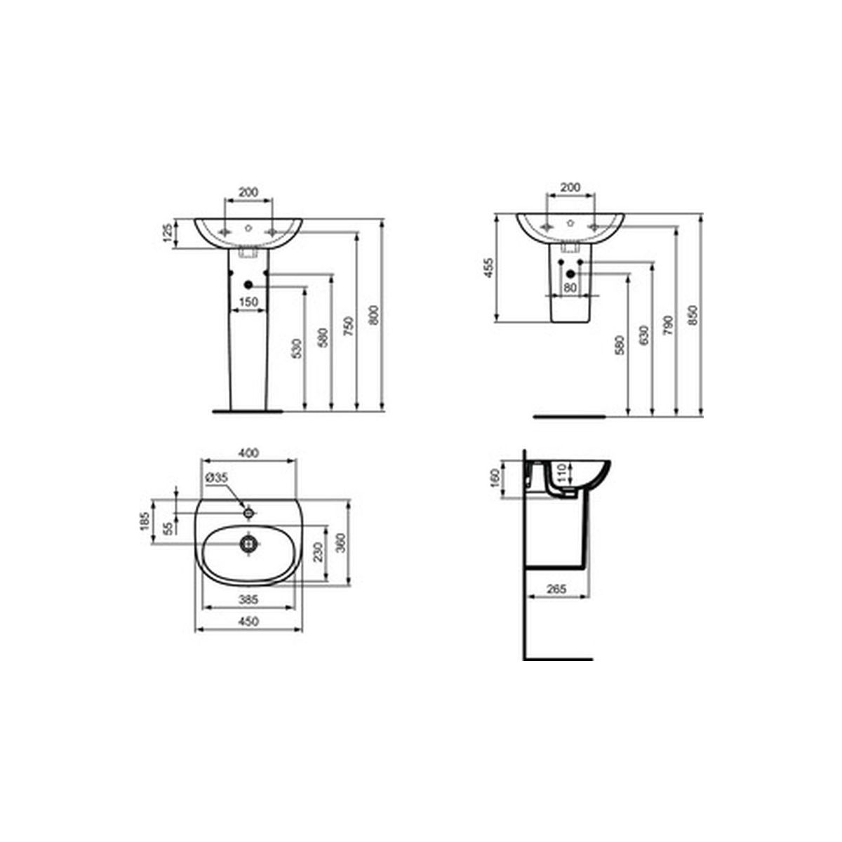 Ideal Standard Tesi Halber Sockel weiß T352001