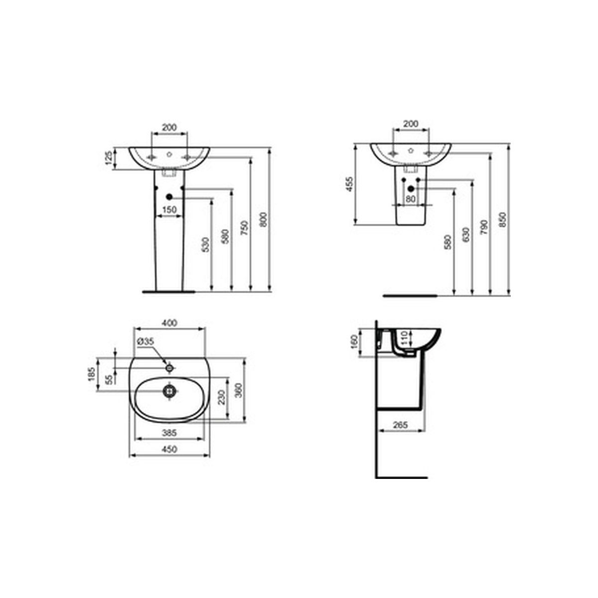 - zur Montage mit: kleinem Sockel T352101, kleinem Halbsockel T352001 oder allein mit Siphon
