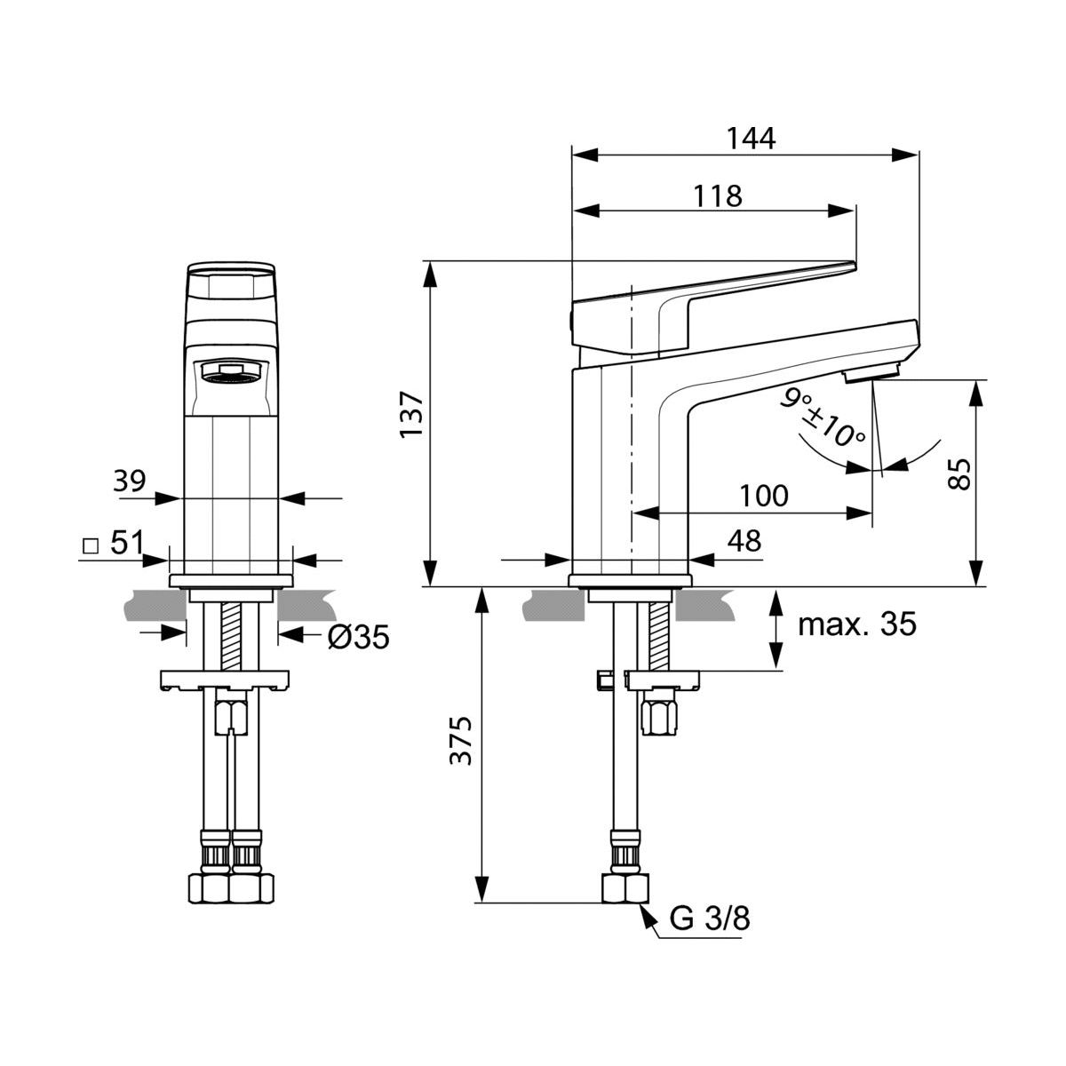 - Cascade-Strahlregler mit Durchflussbegrenzer auf 5 l/min und Strahlrichtungsregler