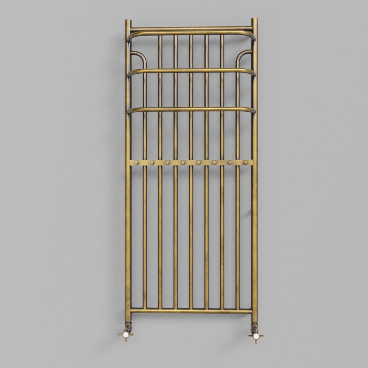 Ein moderner Heizkörper mit dekorativem und praktischem Charakter. Das einzigartige Design und die charakteristischen drei Dipole zeichnen sich durch eine dynamische Form mit vielen praktischen Eigenschaften aus. Stilvoll und gleichzeitig funktional, vollständig aus rostfreien Materialien wie Kupfer und Messing gefertigt.