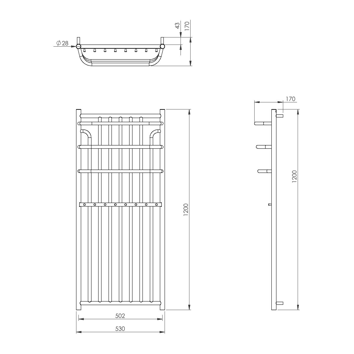 Ein moderner Heizkörper mit dekorativem und praktischem Charakter. Das einzigartige Design und die charakteristischen drei Dipole zeichnen sich durch eine dynamische Form mit vielen praktischen Eigenschaften aus. Stilvoll und gleichzeitig funktional, vollständig aus rostfreien Materialien wie Kupfer und Messing gefertigt.