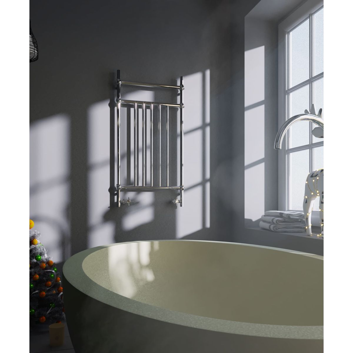 Ein Heizkörper, der speziell für anspruchsvolle Kunden entwickelt wurde, die klassische Badezimmer im Retro-Stil schätzen. Dieser einzigartige Heizkörper mit dekorativen Kugeln verleiht dem Klassizismus eine neue Bedeutung. Standardausführung in altem Messing, handgebürstet.