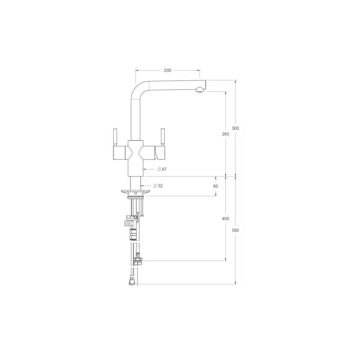 - Höhe des Wasserauslaufs: 26,5 cm