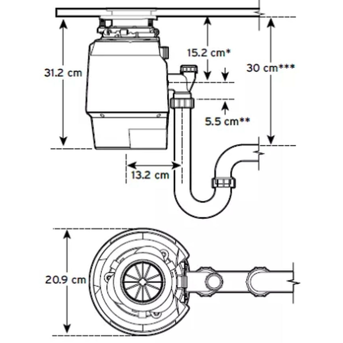 - Anschluss an den Abfluss über ein Klemmgelenk