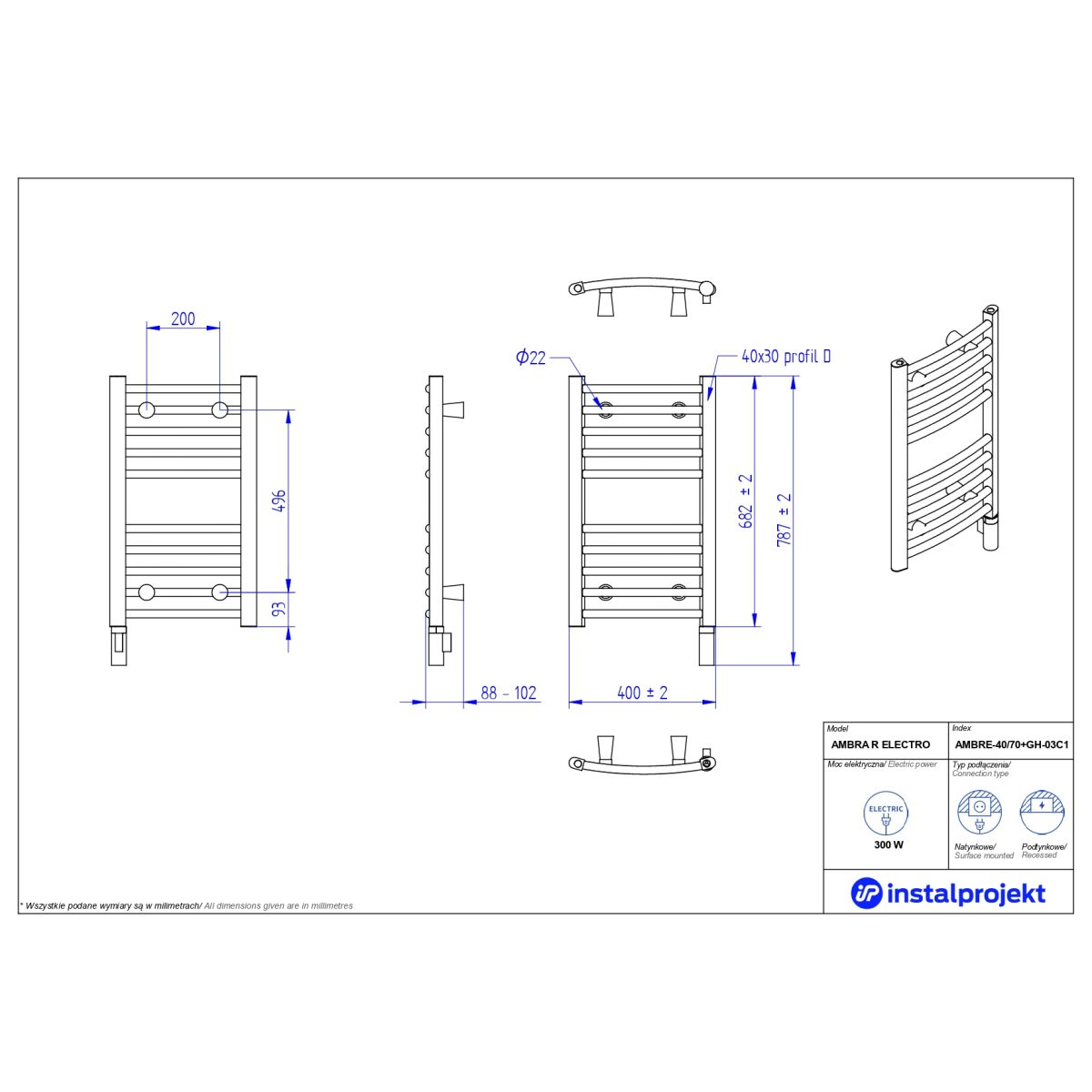 Instal Projekt Ambra Electro Elektrischer Heizkörper 68.2x40 cm weiß AMBRE-40/70+GH-03C1