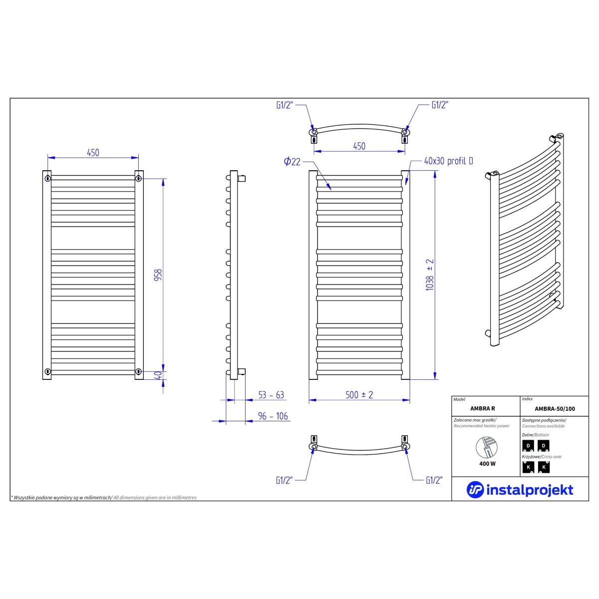 Instal Projekt Ambra R Badezimmerheizkörper Leiter 103x50 cm weiß AMBRA-50/100