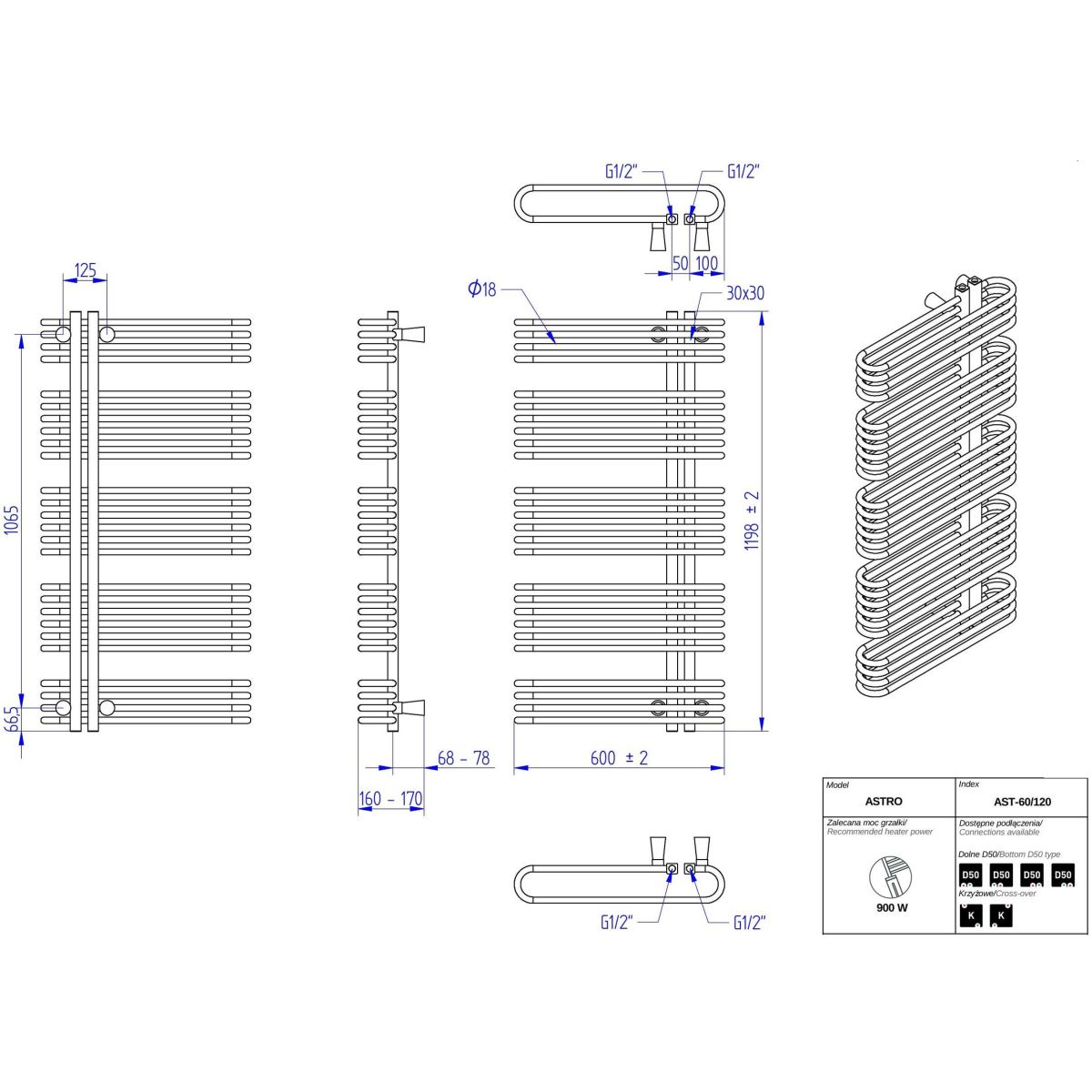 Instal Projekt Astro Badezimmerheizkörper Leiter 119.8x60 cm weiß AST-60/120