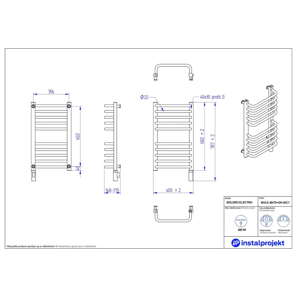 Instal Projekt Bolero Electro Elektrischer Heizkörper 68.2x40 cm weiß BOLE-40/70+GH-03C1