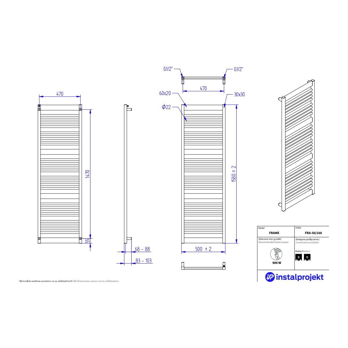 Instal Projekt Frame Badezimmerheizkörper dekorativ 158x50 cm FRA-50/160C12