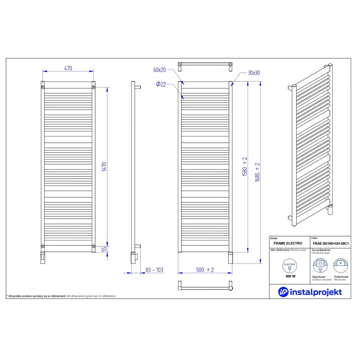 Dank einer großen Auswahl an Größen und Leistungsvarianten passt sich unser Heizkörper Frame Electro ideal an die Besonderheiten Ihres Raumes an. Er ist in mehreren Größen und verschiedenen Farben aus der Instal Projekt-Palette sowie optional in Farben aus der RAL-Palette erhältlich. Darüber hinaus kann er sowohl auf der Wandfläche (auf Putz) als auch verdeckt in der Wand (unter Putz) installiert werden. Dank des geringen Abstands der Leiter zur Wand eignet sich unser Heizkörper sogar für schmale Räume. Trotz seiner kompakten Größe bietet er eine hohe Heizleistung, was ihn zur idealen Wahl für Singles, Paare und Familien mit Kindern macht.