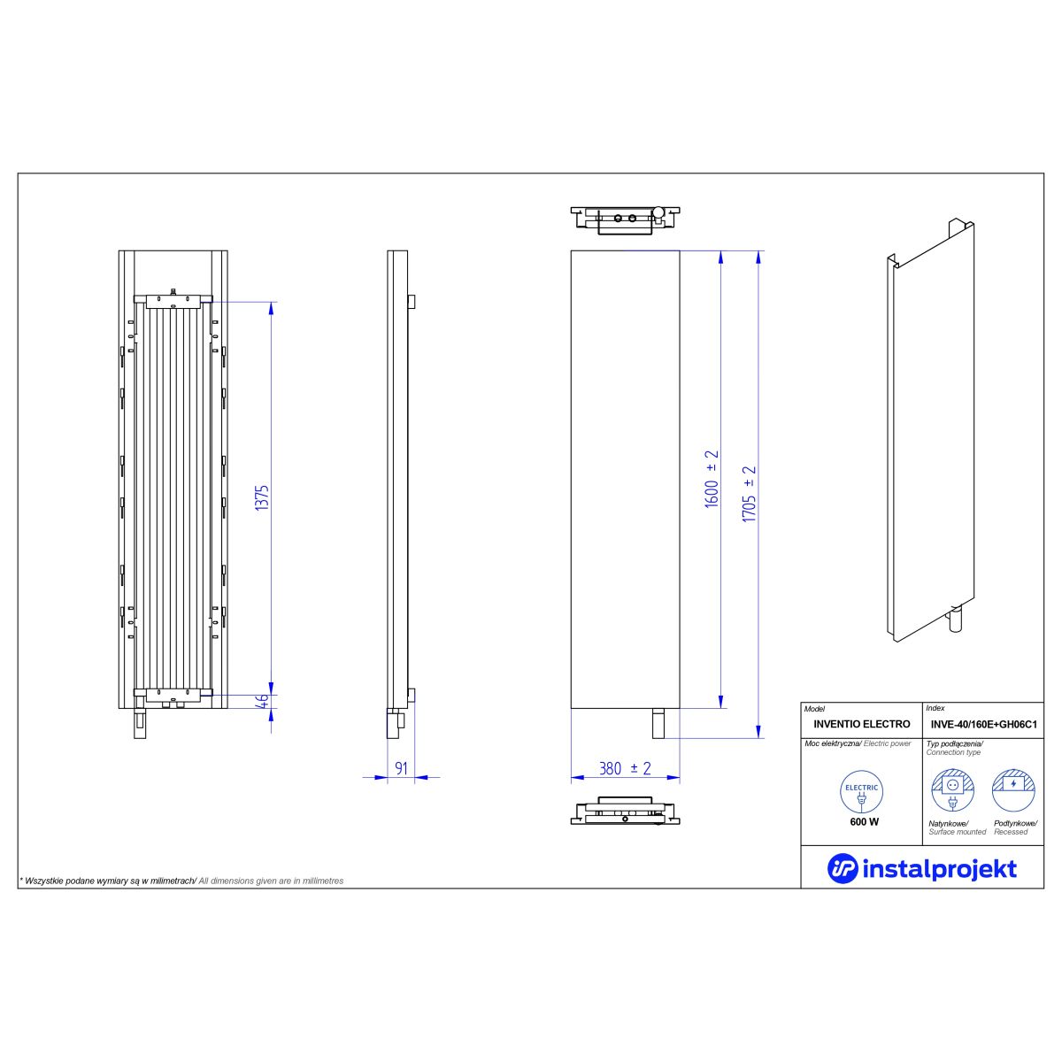 Entdecken Sie den Elektroheizkörper Inventio Electro mit dekorativer Funktion! Die glatte Front ohne zusätzliche Verzierungen und Einkerbungen ist die Essenz des Minimalismus. Er ist die ideale Lösung insbesondere für große, elegante Räume, die eine perfekte Verarbeitung erfordern. Er hat eine hohe Heizleistung und garantiert so den erwarteten Wärmekomfort. In Kombination mit einer speziellen Reling kann er zum Trocknen von Textilien verwendet werden. Ausgestattet mit einem innovativen Elektroheizelement arbeitet er zuverlässig, spart Energie und ist für alle Haushaltsmitglieder einfach zu bedienen.