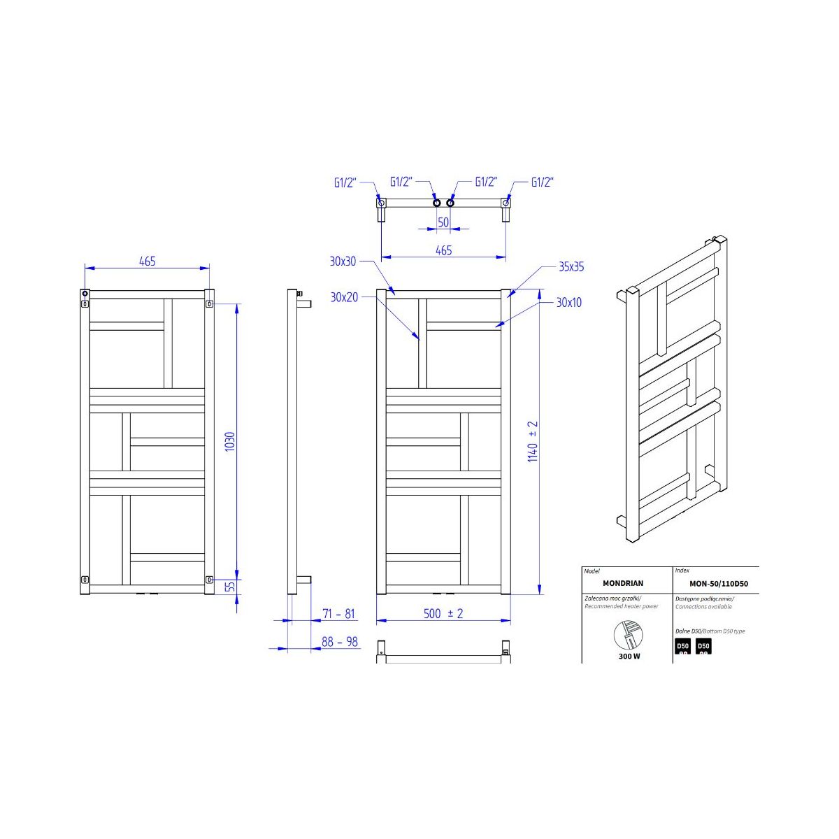 Instal Projekt Mondrian Badezimmerheizkörper dekorativ 114x50 cm schwarz MON-50/110D50C31