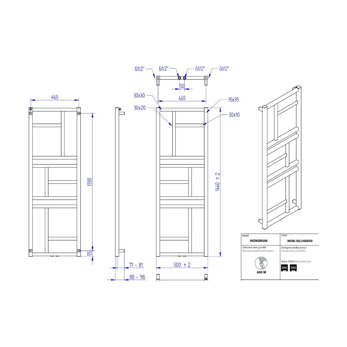 Instal Projekt Mondrian Badezimmerheizkörper dekorativ 144x50 cm weiß MON-50/140D50C34
