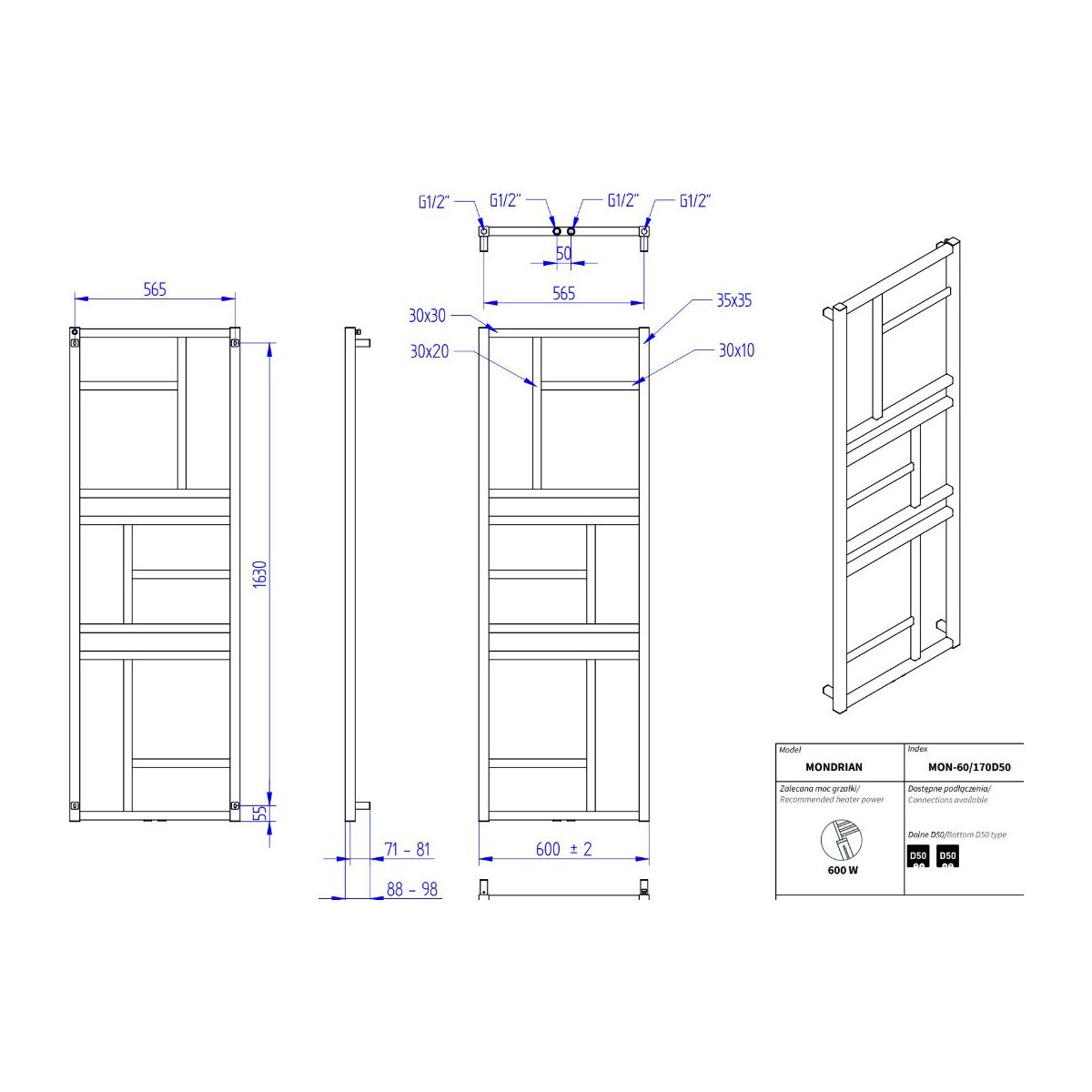 - Breite: 600 mm