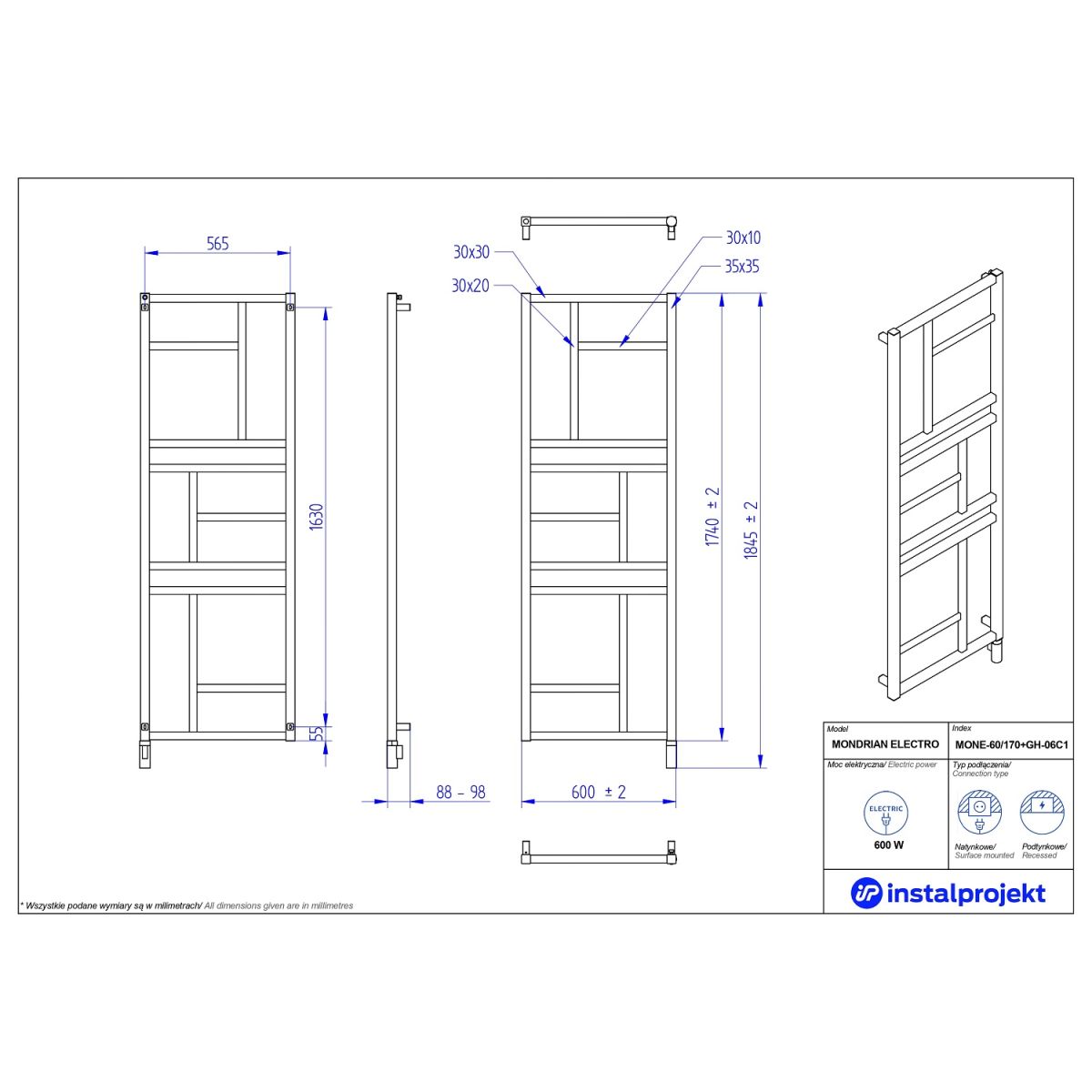 Der Elektroheizkörper Mondrian Electro ist nicht nur ein Heizgerät, sondern auch ein dekoratives Element mit einem ausdrucksstarken Stil. Nach der Montage wird er zu einem untrennbaren Bestandteil eines eleganten Interieurs und verleiht ihm einen individuellen Charakter und künstlerischen Ausdruck. Er macht sowohl in repräsentativen Wohnzimmern und Esszimmern als auch in praktischen Badezimmern eine gute Figur. Mondrian Electro erfüllt die Erwartungen von Menschen, die ein außergewöhnliches Design, höchste Verarbeitungsqualität und langlebige Materialien suchen. Er ist in einer breiten Palette von 23 Farben, verschiedenen Größen und Montageoptionen erhältlich, darunter Aufputz- und Unterputzmontage, um ihn an Ihre Vorlieben anzupassen und den gewünschten Effekt in jedem Raum zu erzielen.