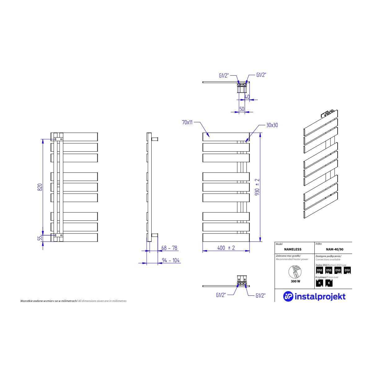 - Breite (L): 400 mm