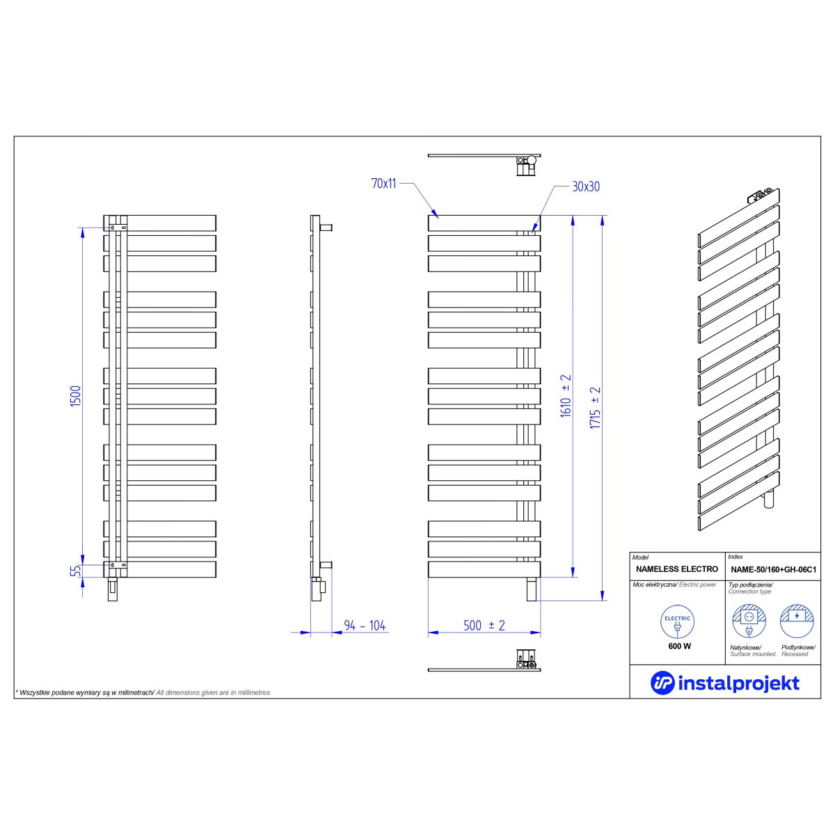 Dank eines modernen Elektroheizelements funktioniert der Heizkörper das ganze Jahr über und liefert Wärme genau dann, wenn Sie sie brauchen. Er harmoniert perfekt mit Fußboden- und Deckenheizungen und bietet zusätzlichen Platz zum Trocknen von Textilien – eine ideale Lösung für Häuser mit Wärmepumpen. Darüber hinaus können Sie ganz einfach die Sonnenenergie aus der Photovoltaik nutzen. Um Ihren Bedürfnissen bestmöglich gerecht zu werden, stehen sowohl Aufputz- als auch Unterputz-Montagemöglichkeiten zur Verfügung. Außerdem ist der Heizkörper in einer großen Auswahl an Farben sowohl aus der Instal Projekt- als auch aus der RAL-Palette erhältlich. Schönheit ist auch Funktionalität, und Nameless Electro ist ein perfektes Beispiel für diese Kombination.