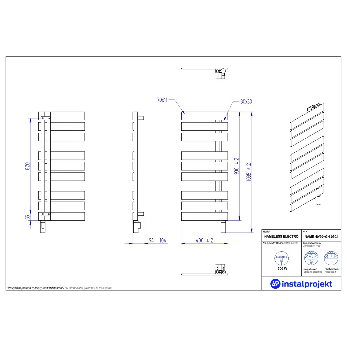Dank eines modernen Elektroheizelements funktioniert der Heizkörper das ganze Jahr über und liefert Wärme genau dann, wenn Sie sie brauchen. Er harmoniert perfekt mit Fußboden- und Deckenheizungen und bietet zusätzlichen Platz zum Trocknen von Textilien – die ideale Lösung für Häuser mit Wärmepumpe. Darüber hinaus können Sie ganz einfach die Sonnenenergie aus der Photovoltaik nutzen. Um Ihren Bedürfnissen bestmöglich gerecht zu werden, stehen sowohl Aufputz- als auch Unterputz-Montagemöglichkeiten zur Verfügung. Außerdem ist der Heizkörper in einer großen Auswahl an Farben sowohl aus der Instal Projekt- als auch aus der RAL-Palette erhältlich. Schönheit ist auch Funktionalität, und Nameless Electro ist ein perfektes Beispiel für diese Kombination.