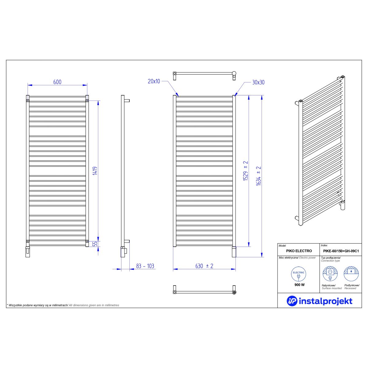 Instal Projekt Piko Electro Elektrischer Heizkörper 152.9x63 cm weiß PIKE-60/150+GH-09C1