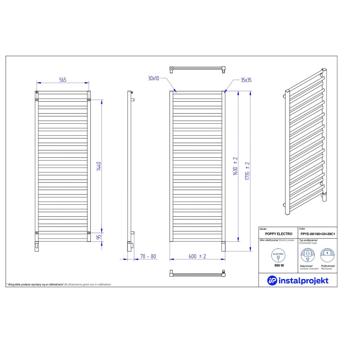 Instal Projekt Poppy Electro Elektrischer Heizkörper 163x60 cm weiß PPYE-60/160+GH-09C1
