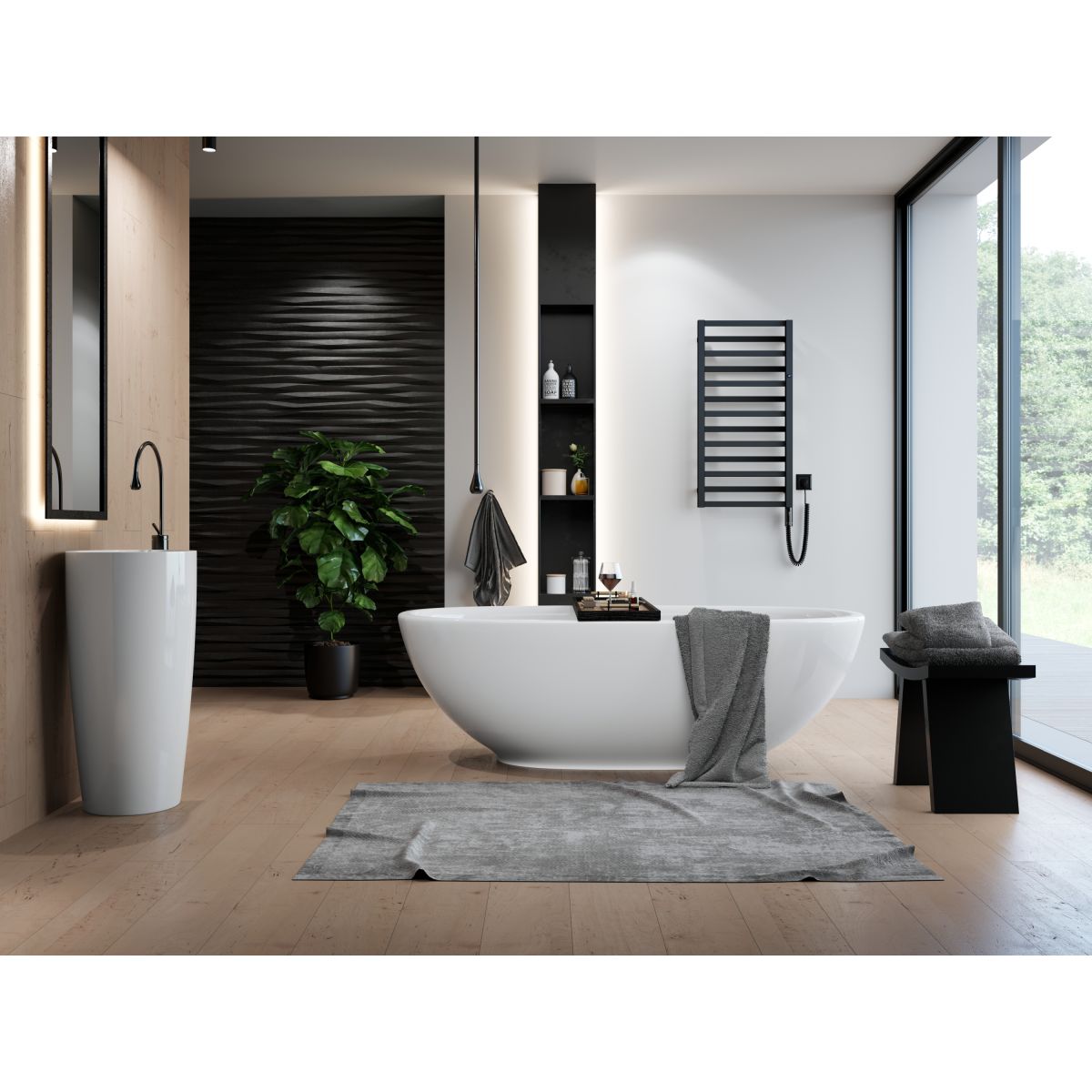 Der Elektroheizkörper Poppy Electro ist eine moderne Version des bekannten Leiterheizkörpers. Die Originalität wird durch die zweireihigen, schmalen Profile mit rechteckigem Querschnitt unterstrichen. Er verleiht Innenräumen einen äußerst modischen, geometrischen Akzent. Die Profile sorgen für Geräumigkeit, während die geschlossene Form ein Gefühl von Harmonie und Ruhe vermittelt. Der Heizkörper ist in Schwarz und Weiß erhältlich, in matter Ausführung, mit Glanz und sichtbarer Materialstruktur, aber auch in allen 23 Farben der IP-Palette. Dank der Möglichkeit einer Unterputzverbindung wird das Gerät zu einem integralen Bestandteil, ohne hervorstehende Kabel, und schafft einen schönen Effekt der Kohärenz.